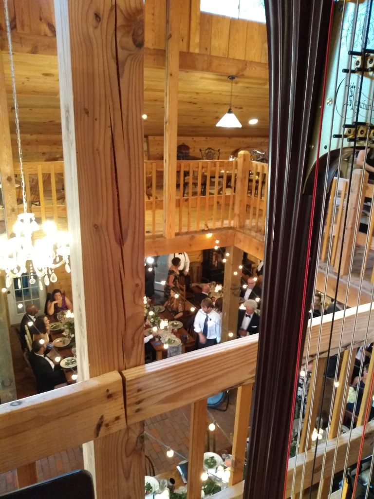We were really lucky that the rain held off. It started pouring down once everyone was relocated into the barn for the dinner. I was positioned up in the loft where I could play for everyone down below. The barn setup was beautiful and everyone seemed to be having a great time.